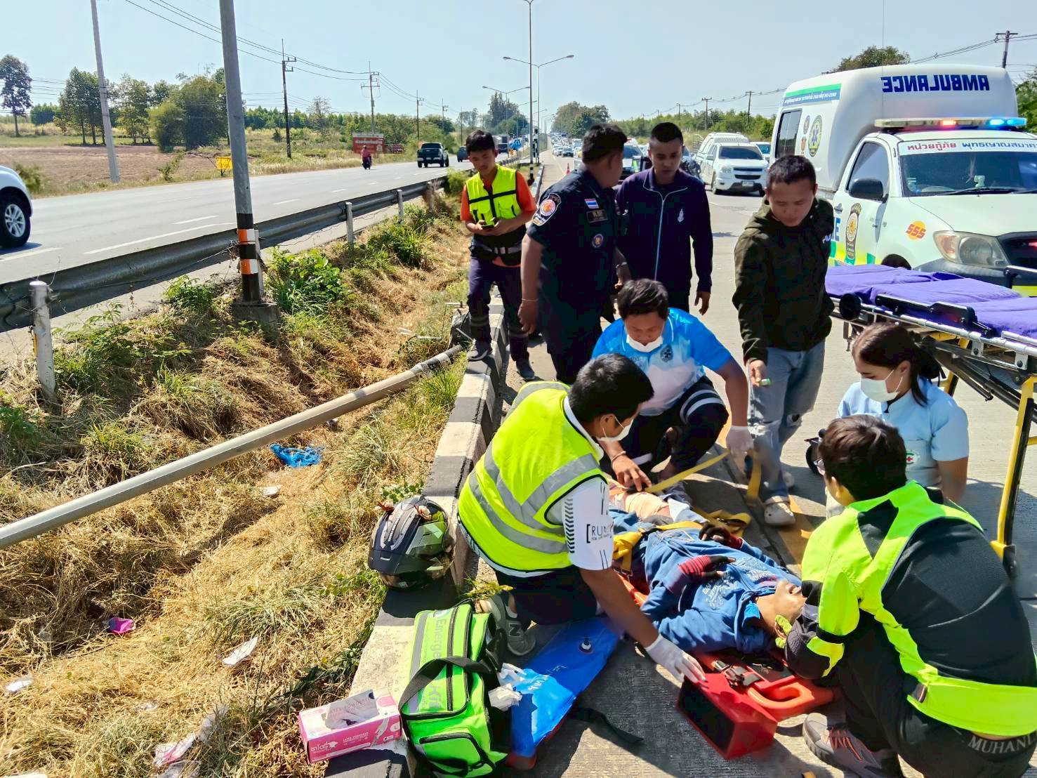 3 ก.พ. 69 ร.ต.อ.สุรพล เถาว์พันธ์ ร้อยเวร 30 ตรวจที่เกิดเหตุ ว.40 รถยนต์เก๋งลงล่องกลางถนนมีผู้บาดเจ็