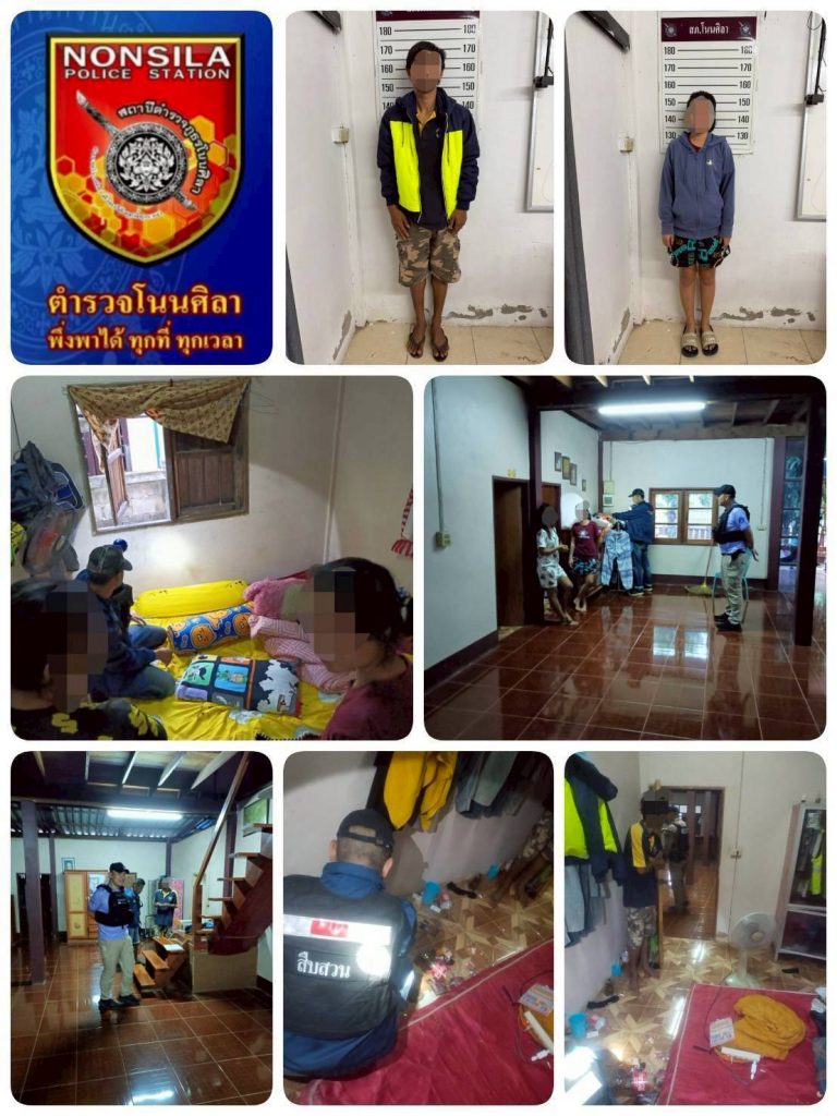 เจ้าหน้าที่ตำรวจ สภ.โนนศิลา ร่วมกับเจ้าพนักงานฝ่ายปกครองอำเภอโนนศิลา จับกุมผู้ต้องหาคดียาเสพติด จำนวน ๒ ราย 23 ตุลาคม 2568 โดย admin / ประจำเดือน ตุลาคม สืบ. วันที่ ๒๓ ต.ค. ๒๕๖๘ เวลา ๐๖.๐๐ น. ตามนโยบายของ ผบช.ภ.๔ ให้มีการปิดล้อมตรวจค้นยาเสพติด สัปดาห์ละ 1 ครั้ง โดยการอำนวยการของ นายอดุลย์ นาคสุวรรณ์ นายอำเภอโนนศิลา, พ.ต.อ.ถนอมศักดิ์ โสภา ผกก.สภ.โนนศิลา ได้มอบหมายสั่งการให้ เจ้าหน้าที่ชุดจับกุม นำโดย พ.ต.ท.รัฐพล ไชยโย รอง ผกก.สส. สภ.โนนศิลา, พ.ต.ต.เกียรติศักดิ์ เรืองศรีจันทร์ สว.สส.สภ.โนนศิลา พร้อมด้วย เจ้าหน้าที่ตำรวจ สภ.โนนศิลา ร่วมกับเจ้าพนักงานฝ่ายปกครองอำเภอโนนศิลา จับกุมผู้ต้องหาคดียาเสพติด จำนวน ๒ ราย Facebook iconFacebookTwitter iconTwitterLINE iconLine