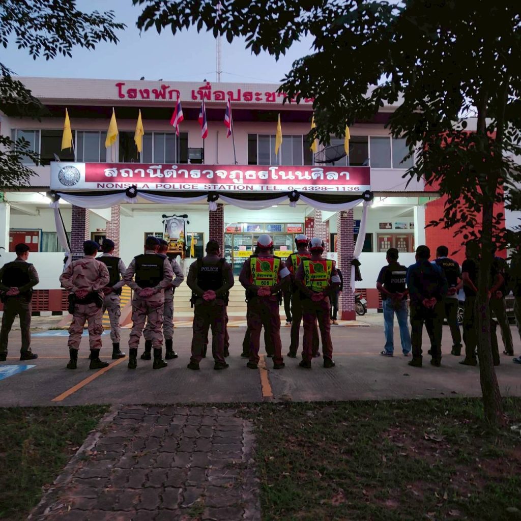 “รวมพลังรักศรัทธาแก้ปัญหายาเสพติดแบบบูรณาการ” Quick Big Win 11 พฤศจิกายน 2568 โดย admin / ประจำเดือน พฤศจิกายน สืบ. วันที่ ( 11 พ.ย.2568) เวลา 06.00 น.โดยการอำนวยการของ นายอดุลย์ นาคสุวรรณ์ นายอำเภอโนนศิลา, พ.ต.อ.ถนอมศักดิ์ โสภา ผกก.สภ.โนนศิลา ชุดปฏิบัติการ นำโดย พ.ต.ท.รัฐพล ไชยโย รอง ผกก.สส. สภ.โนนศิลา, พ.ต.ต.เกียรติศักดิ์ เรืองศรีจันทร์ สว.สส.สภ.โนนศิลา พร้อมด้วย เจ้าหน้าที่ตำรวจ สภ.โนนศิลา ร่วมกับเจ้าพนักงานฝ่ายปกครองอำเภอโนนศิลา ร่วมชี้แจงปล่อยแถวข้าราชการตำรวจ เจ้าหน้าที่ฝ่ายปกครอง อส. ระดมกวาดล้างยาเสพติด ตามโครงการ “รวมพลังรักศรัทธาแก้ปัญหายาเสพติดแบบบูรณาการ” Quick Big Win ณ ลานหน้าที่ทำการสถานีตำรวจภูธรโนนศิลา Facebook iconFacebookTwitter iconTwitterLINE iconLine
