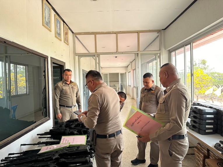 ตรวจสอบอาวุธปืนที่เบิกจ่ายทางราชการและอาวุธปืนคงคลัง 26 พฤศจิกายน 2567 โดย admin / ประจำเดือน พฤศจิกายน อก. วันที่ 26 พฤศจิกายน 2567 เวลา 10.00 น. พ.ต.อ.สำเนาว์ กรุยกระโทก ผกก.สภ.โนนศิลา, พ.ต.ท.อธิโชค มีทอง รอง ผกก.ป.สภ.โนนศิลา, พ.ต.ท. พงษ์ศักดิ์ ผิวผุย รอง ผกก.(สอบสวน) สภ.โนนศิลา, พ.ต.ท.สนชัย หงษ์ทอง สว.อก.สภ.โนนศิลา พร้อมคณะกรรมการ ฯ ตรวจสภาพ ตรวจสอบอาวุธปืนที่เบิกจ่ายทางราชการและอาวุธปืนคงคลัง สภ.โนนศิลา Facebook iconFacebookTwitter iconTwitterLINE iconLine