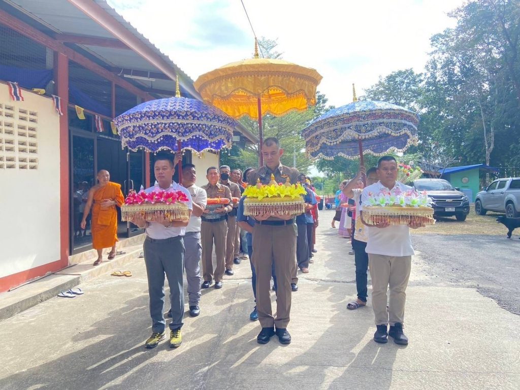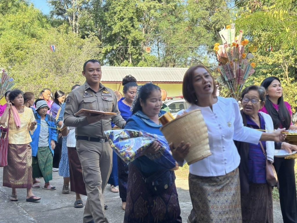 วันที่ 15 พฤศจิกายน 2567 เวลา 09.09 น.พ.ต.อ.สำเนาว์ กรุยกระโทก ผกก.สภ.โนนศิลา พร้อม พ.ต.ท.พงษ์ศักดิ์ ผิวผุย รอง ผกก.(สอบสวน) สภ.โนนศิลา และ กต.ตร.สภ.โนนศิลา ร่วมทอดกฐินสามัคคีเพื่อทำนุบำรุงวัด ดำรงรักษาพระพุทธศาสนา ณ วัดรักขิตวัน บ้านวังขอนพาด ม.3 ต.โจดหนองแก อ.พล จ.ขอนแก่นโดยมี พ.ต.อ.พีรฉัตร สาขา ผกก.สภ.พล เป็นประธานฝ่ายฆราวาส