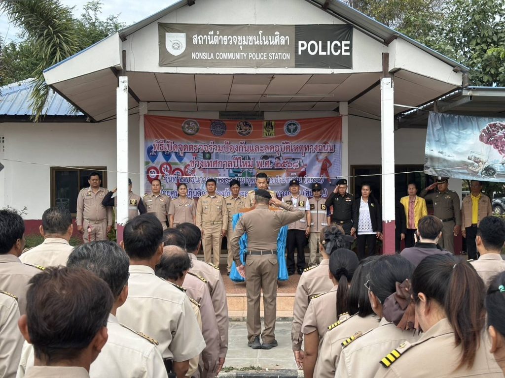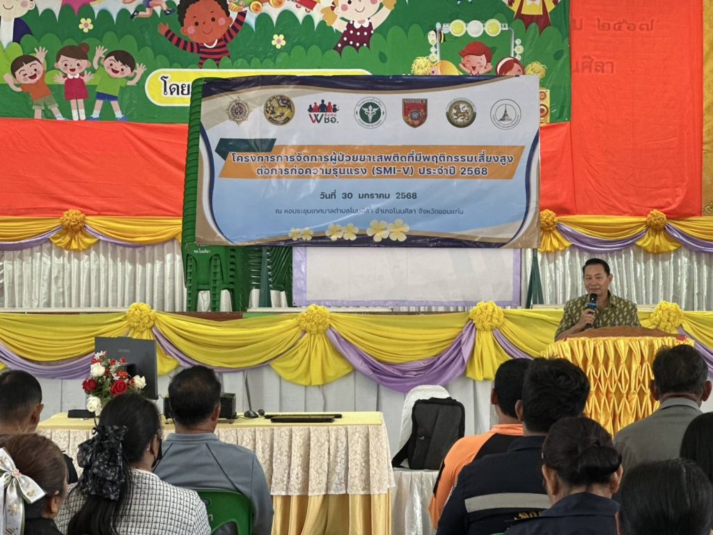วันที่ 13 กุมภาพันธ์ 2568 เวลา 10.00 น.พ.ต.อ.สำเนาว์ กรุยกระโทก ผกก.สภ.โนนศิลา พร้อม พ.ต.ท.วีระชัย กองหล้า สวป.สภ.โนนศิลา และ กต.ตร.สภ.โนนศิลา ร่วมพิธีเปิดโครงการฟื้นฟูสภาพผู้ป่วยยาเสพติดและผู้มีอาการทางจิตจากยาเสพติดระหว่างรอเข้าสู่การบำบัดรักษาหรือก่อนกลับคืนสู่ชุมชน ณ หอประชุมอำเภอโนนศิลาโดยมี นายอดุลย์ นาคสุวรรณ์ นายอำเภอโนนศิลา เป็นประธาน