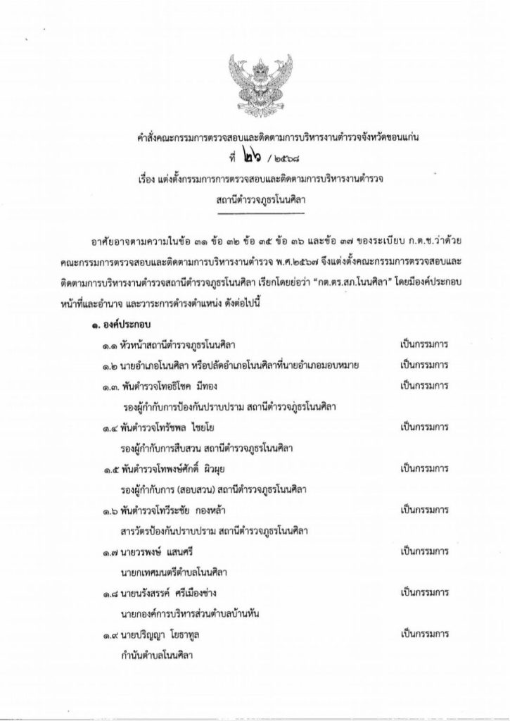 วันที่ 19 มีนาคม 2568 เวลา 10.00 น. พ.ต.อ.ถนอมศักดิ์ โสภา ผกก.สภ.โนนศิลา พร้อมด้วยคณะกรรมการตรวจสอบและติดตามการบริหารงานตำรวจสถานีตำรวจภูธรโนนศิลา (กต.ตร.สภ.โนนศิลา) ร่วมประชุมชี้แจงข้อราชการ และประชุมหารือการดำเนินงานในกิจการของตำรวจ ตลอดจนเสนอข้อคิดเห็นและแนวทางในการปฏิบัติงานและการแก้ไขปัญหาต่างๆ เพื่อให้การปฏิบัติงานของตำรวจเป็นไปด้วยความเรียบร้อยและมีประสิทธิภาพมากยิ่งขึ้น ณ ห้องประชุม สภ.โนนศิลา อ.โนนศิลา จ.ขอนแก่น