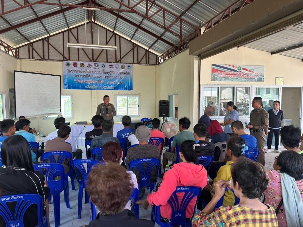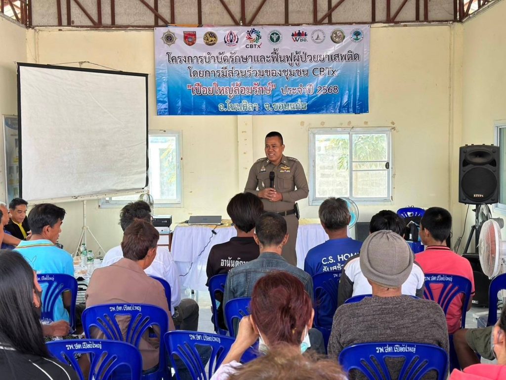 วันที่ 20 กุมภาพันธ์ 2568 เวลา 10.00 น.พ.ต.อ.สำเนาว์ กรุยกระโทก ผกก.สภ.โนนศิลา ,ร.ต.อ.ผดุง ชูเชิด รอง สวป.(ชส.)สภ.โนนศิลา พร้อมชุดชุมชนสัมพันธ์ และ กต.ตร.สภ.โนนศิลา ร่วมพิธีเปิดโครงการชุมชนล้อมรักษ์ (CBTx) และให้ความรู้แก่ผู้เข้ารับการอบรม กำนัน ผู้ใหญ่บ้าน ผู้ใหญ่บ้าน แพทย์ฯ สารวัตรกำนัน ผู้นำชุมชน คณะผู้บริหาร อบต.เปือยใหญ่ จนท.โรงพยาบาลส่งเสริมสุขภาพตำบล และตัวแทนภาคประชาชน ณ ห้องประชุม รพ.สต.เปือยใหญ่ อำเภอโนนศิลา ฯโดยมี นายอดุลย์ นาคสุวรรณ์ นายอำเภอโนนศิลา เป็นประธาน